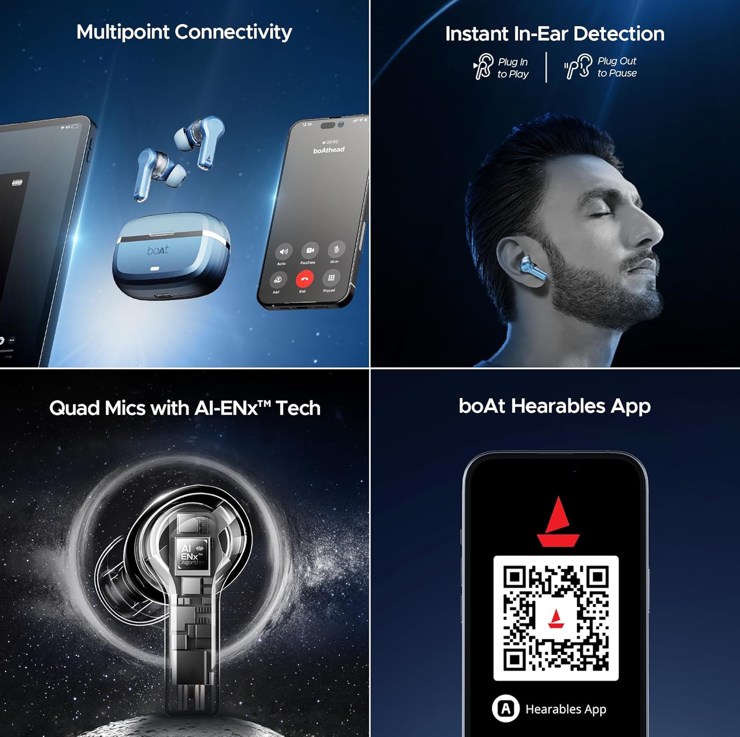 - Immersive 360º Spatial Audio – Experience cinematic surround sound with boAt 360º Spatial Audio, bringing action-packed scenes and soothing melodies to life with audio from all directions.