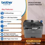 Brother DCP-L2640DW Multifunction Monochrome Laser Printer – Duplex, WiFi, ADF, Network-Ready (Black)