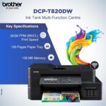 Brother DCP-T820DW Ink Tank Multifunction Printer – Wi-Fi, Auto Duplex, ADF, LCD, Extra Black Ink, High Page Yield (Print | Scan | Copy)