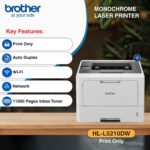 Brother HL-L5210DW Monochrome Laser Printer – Auto Duplex, 48 PPM, Wi-Fi, LAN, USB, 1 GB Memory, 11,000 Page Toner (White)