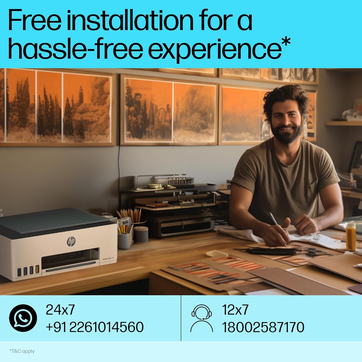 The HP Smart Tank 580 is a high-performance all-in-one ink tank printer designed for cost-efficient, high-volume color and black-and-white printing. With Wi-Fi connectivity, smart app support, and an extra black ink bottle included, this printer is ideal for homes and small offices looking for affordable, borderless, and wireless printing.