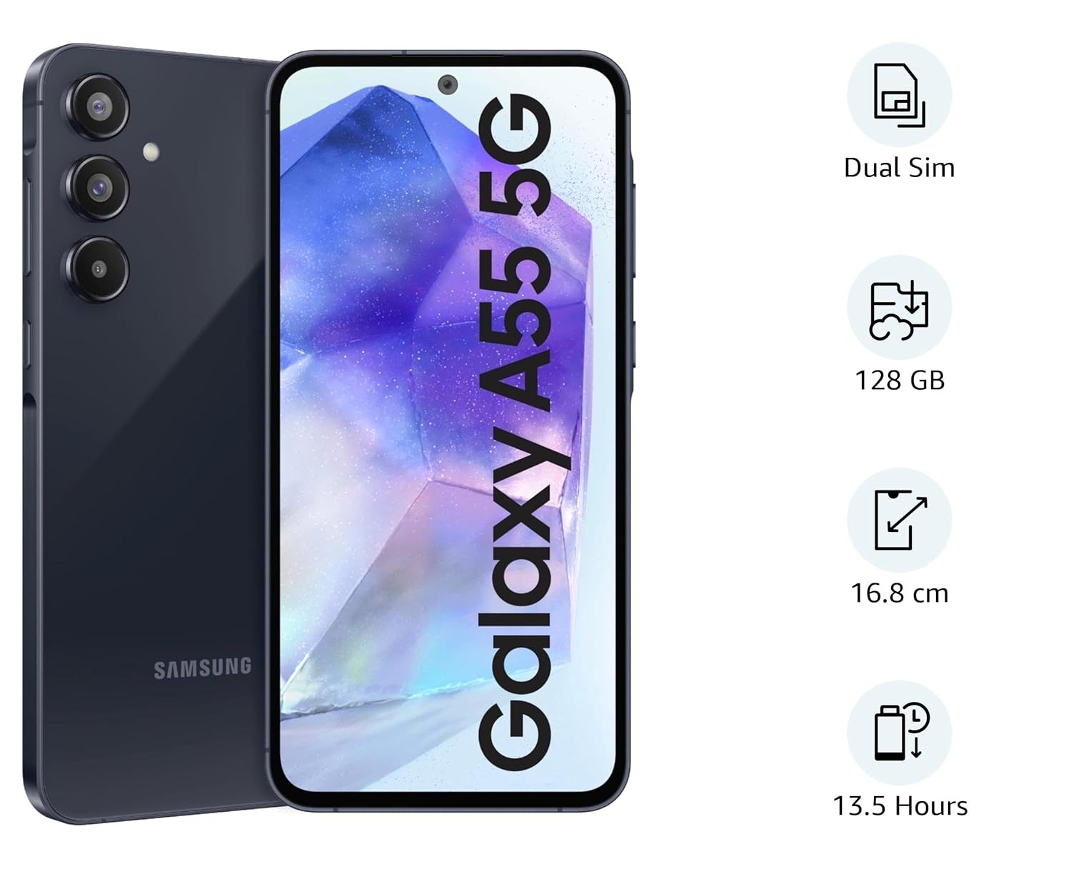 Samsung Galaxy A55 5G AI Smartphone – Awesome Navy, Awesome Iceblue (8GB RAM, 128GB Storage)